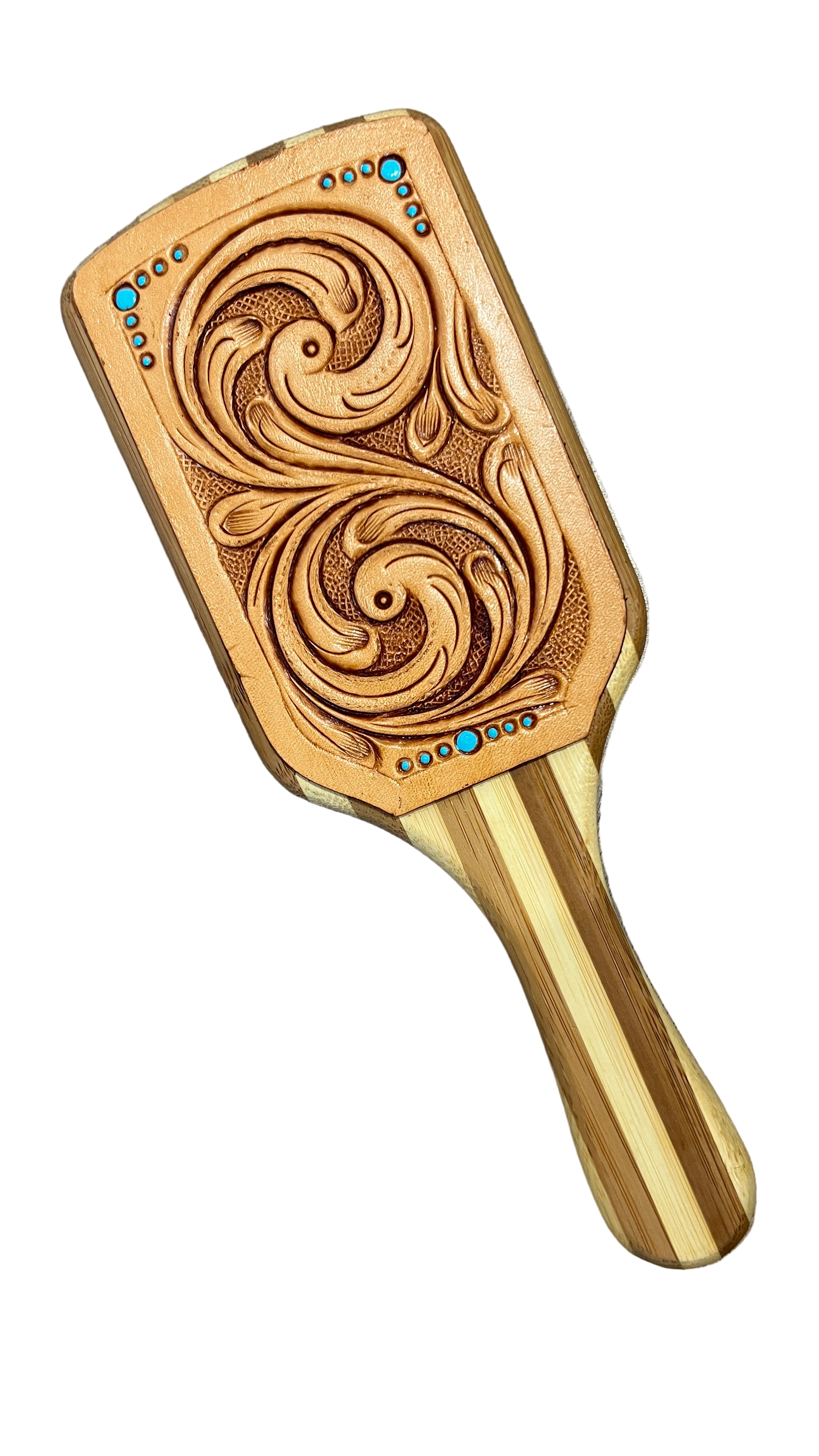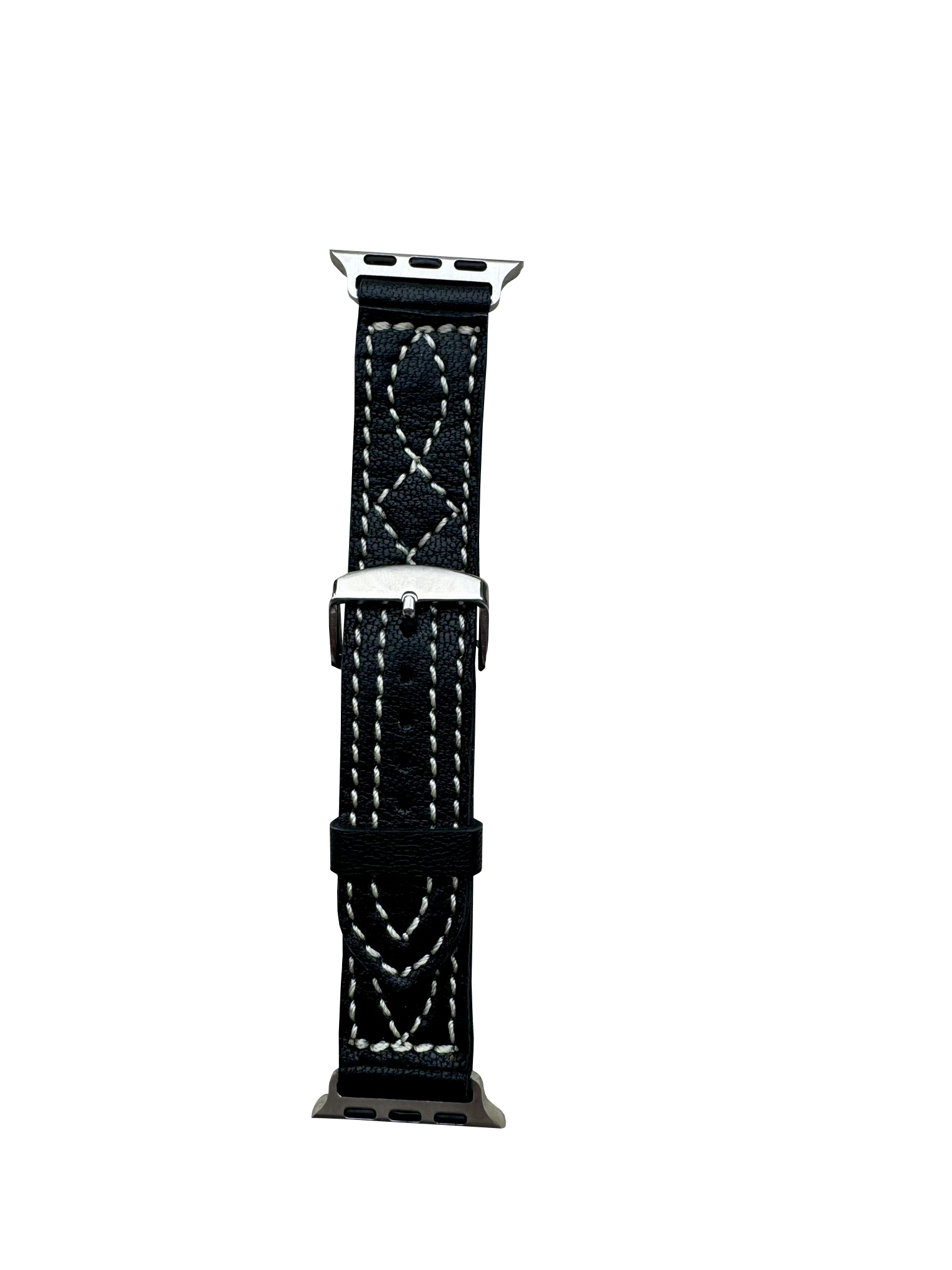 Tooled Leather Rounded Apple Watch Band with Turquoise